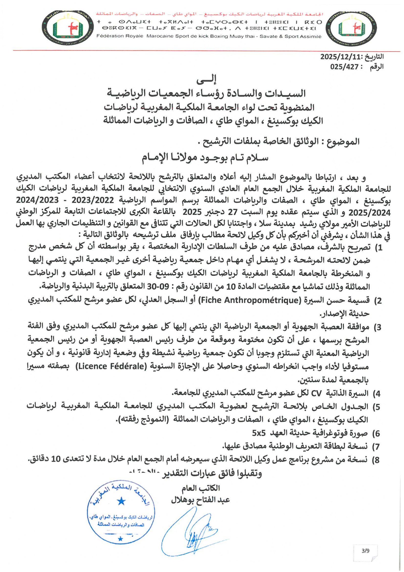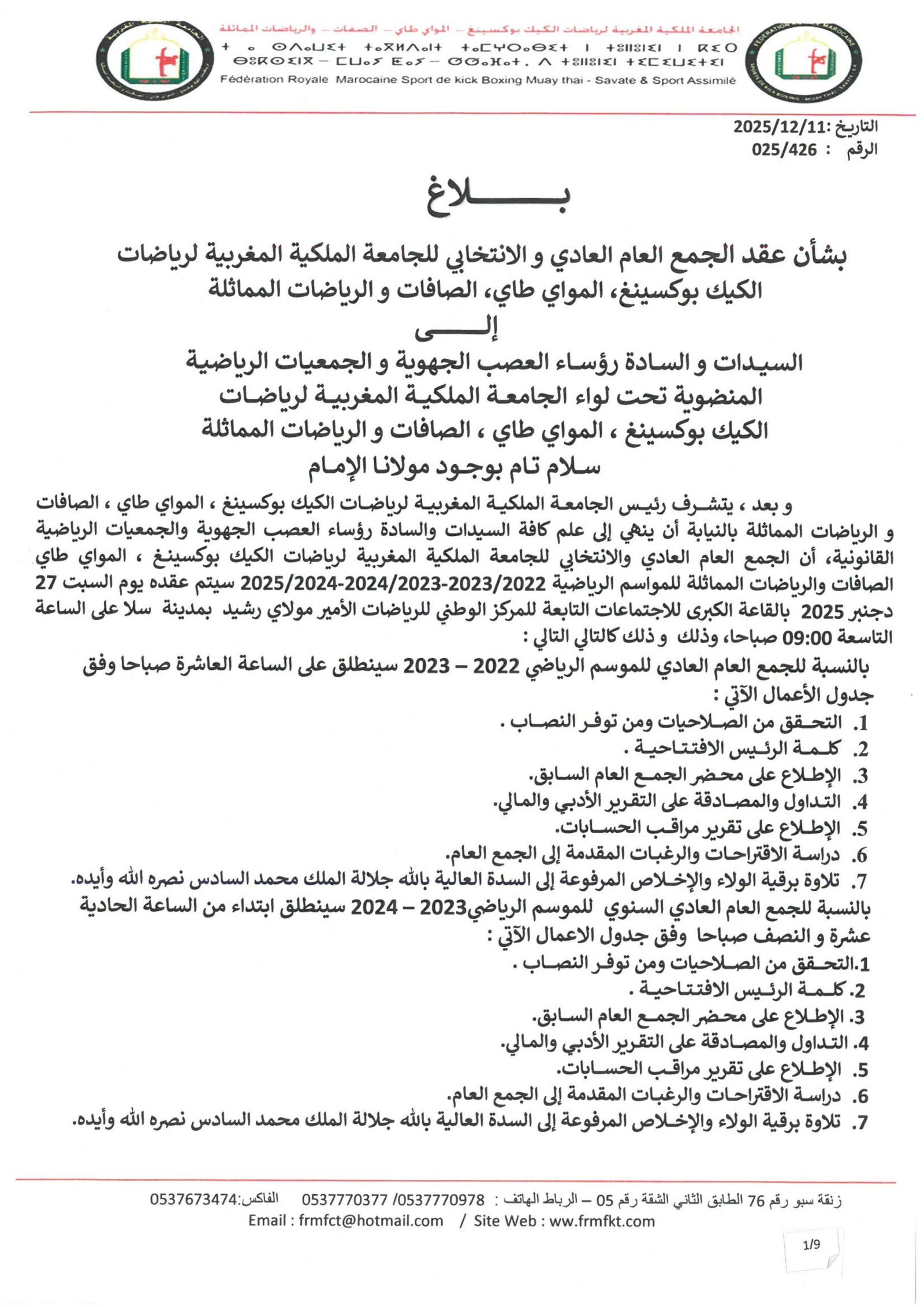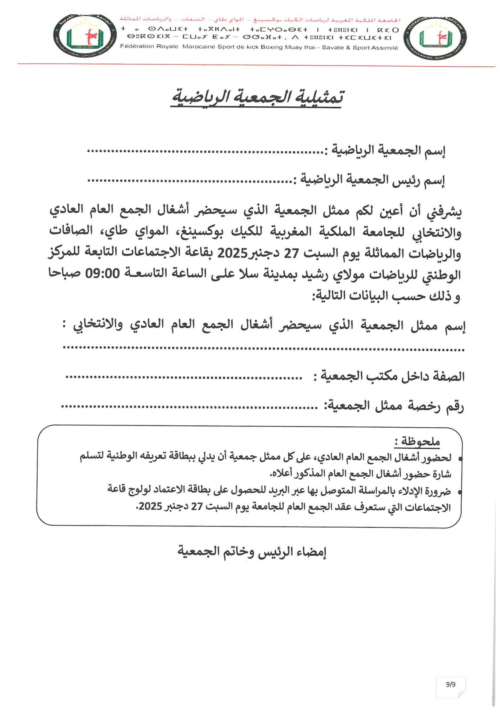 الجمع العام العادي والانتخابي للموسم الرياضي 2024-2025